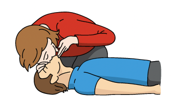 - Obejmij ustami usta poszkodowanego i wykonaj 2 oddechy.